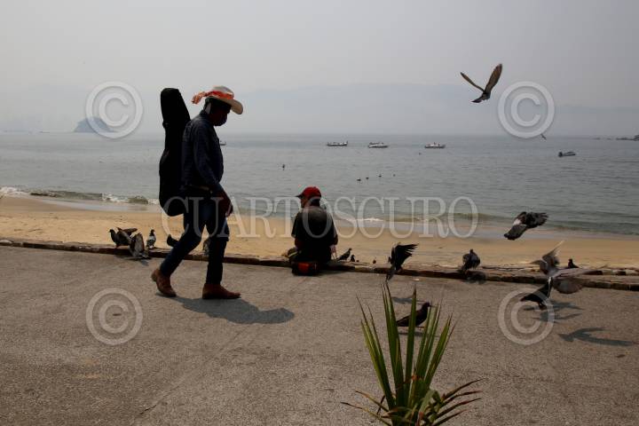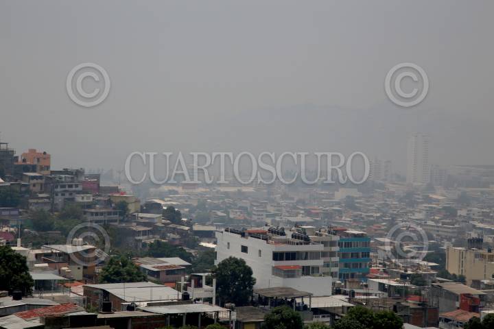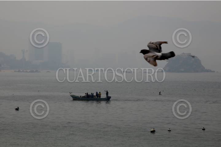 Una densa capa de humo cubrió desde muy temprano al puerto de Acapulco, Protección Civil informo que se trata de bruma provocada por el calentamiento del mar combinada con humo de incendio forestales que se encuentran en los al rededores del municipio,