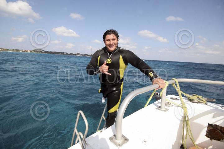 CANCÚN, QUINTANA ROO, 09MARZO2013.- La empresa Scuba Cancun se une a Delphinus para promover el buceo a jóvenes con capacidades diferentes, esto fue comunicado hoy en una conferencia de prensa y con el deportistas Leo Morales (en la imagen), buzo profesional mexicano, quien el 8 de diciembre pasado rompió el récord Guinnes mundial de buceo profundo para deportistas con capacidades diferentes. FOTO: CSPHOTO /CUARTOSCURO.COM