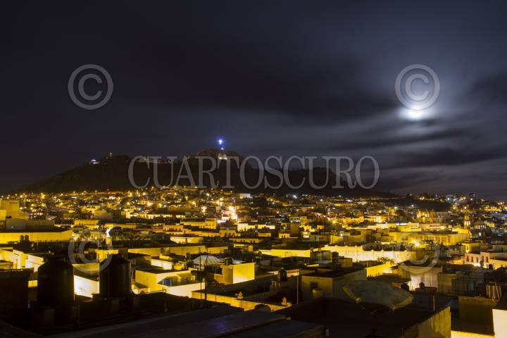 ZACATECAS, ZACATECAS, 24ENERO2016.- Luna llena sobre la sabana de nubes, ilumina el cerro de La Bufa en la capital del estado. FOTO: ADOLFO VLADIMIR /CUARTOSCURO.COM