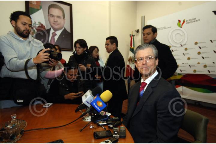 XALAPA,VERACRUZ 14MARZO2013.- El secretario de Gobierno, Gerardo Buganza Salmerón rechazó que en la congregación de El Inglés, en Tlalixcoyan, haya grupos armados, en conferencia de prensa, Buganza Salmerón dijo que la Secretaría de Seguridad Pública ya tomó cartas en el asunto para analizar si es necesaria su intervención. Agregó que las imágenes difundidas en los medios de comunicación que muestran la práctica de grupos armados no coinciden con las realidad, ya que, sin ser experto en la materia, considera que son fotos de archivo. FOTO: TONA NAVARRO /CUARTOSCURO.COM
