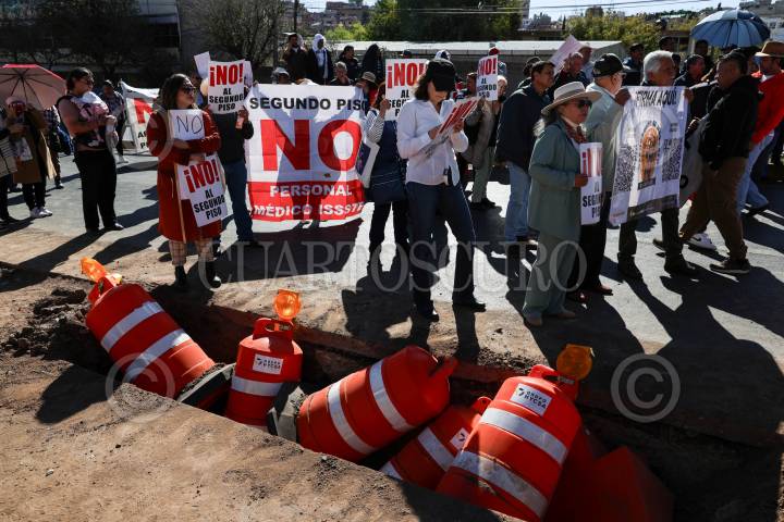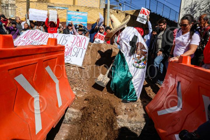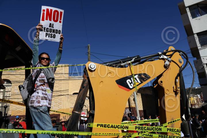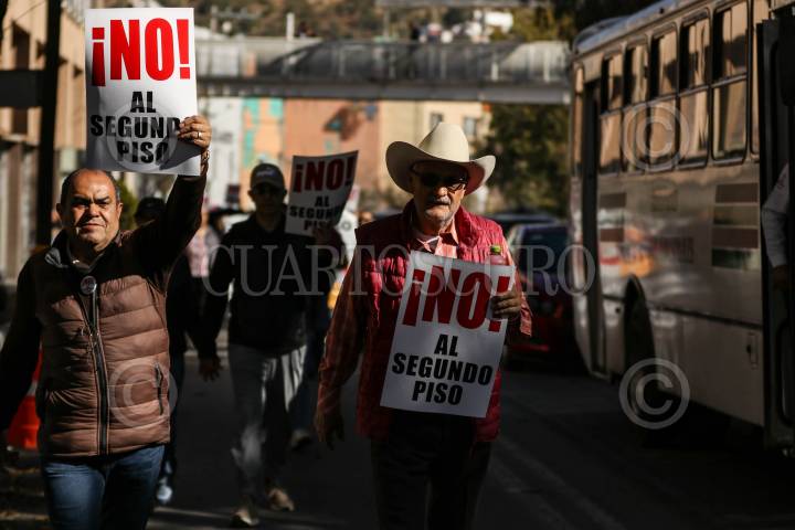 ZACATECAS, ZACATECAS, 23DICIEMBRE2024.- Ciudadanos y diversos sectores sociales se manifestaron en contra de la construcción del “Viaducto elevado”, con una marcha desde la Plaza Bicentenario hasta llegar al lugar en donde comenzaron los trabajos de la empresa Hycsa, en pleno centro del bulevar metropolitano. Esto provocó un bloqueo durante un par de horas. Al lugar también acudió Miguel Varela, presidente municipal de Zacatecas, quien clausuró los trabajos. El alcalde de oposicion informó que la empresa constructora no ha presentado los requerimientos de Protección Civil. FOTO: ADOLFO VLADIMIR /CUARTOSCURO.COM