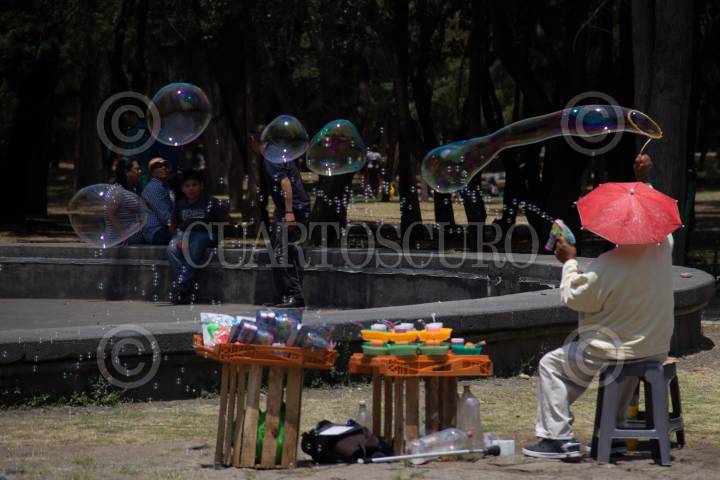 CIUDAD DE MÉXICO, 07ABRIL2019.- Un comerciante vende burbujas de jabón en el Bosque de Chapultepec. FOTO: GRACIELA LÓPEZ /CUARTOSCURO.COM