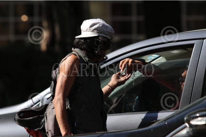 Un señor en situación de calle recibe monedas de un conductor sobre avenida Reforma.