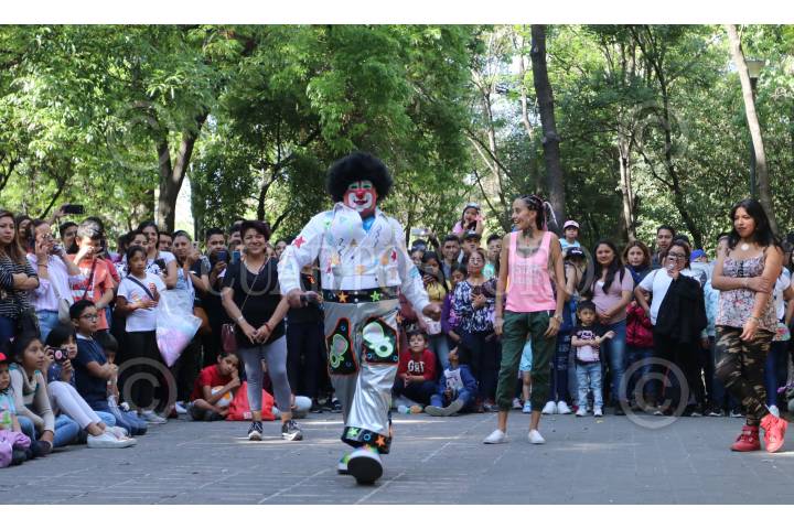 Un payaso ofrece espectáculo callejero en el bosque de Chapultepec