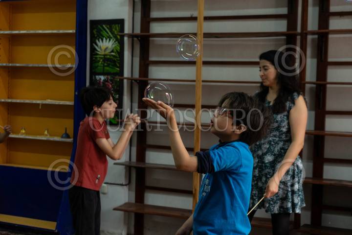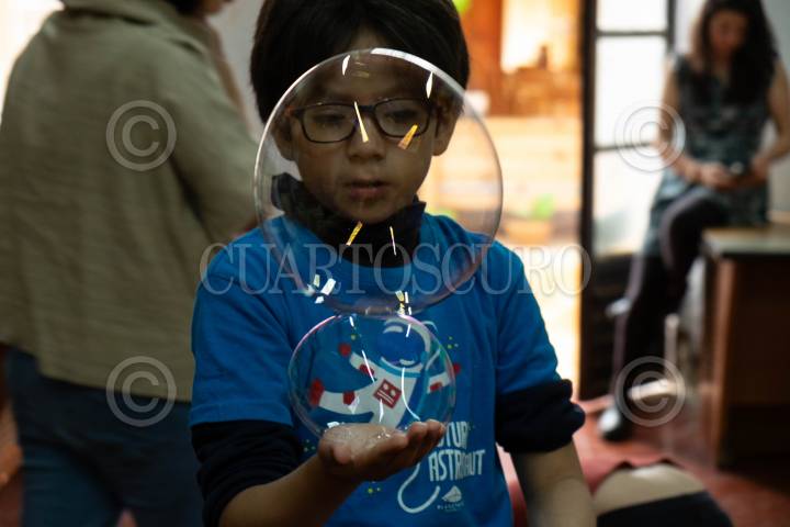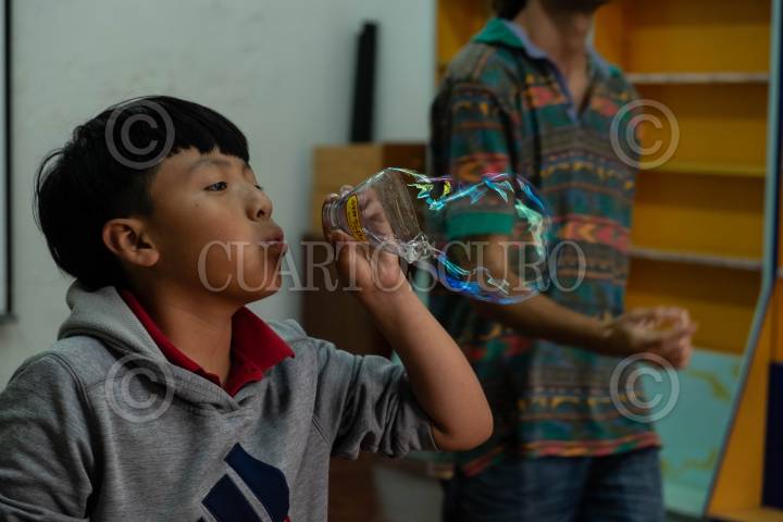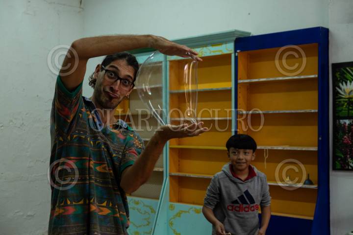 La Compañía de Teatro Tampoco Tan Poco a cargo de Matías Zeta ofreció un taller a niños para que aprendan el arte de hacer burbujas y malabares, en el marco de las vacaciones de verano.