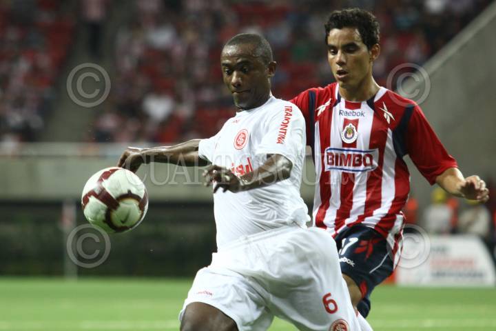 ZAPOPAN, JALISCO, 11AGOSTO2010.- Omar Bravo de las Chivas del Guadalajara busca el balón durante el encuentro en contra del Internacional de Porto Alegre del partido de ida de la final de la copa Santander Libertadores 2010 que se realizo en el estadio Omnilife. El Internacional gano 2 goles por 1 a las Chivas. FOTO: RODOLFO ANGULO/CUARTOSCURO.COM