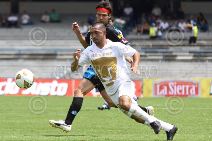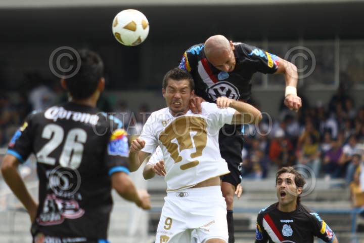 MÉXICO, D.F., 22AGOSTO2010.- Dante López de los Pumas de la UNAM busca el remate durante el encuentro en contra del Puebla de la Franja, partido de la jornada 5 del torneo Apertura 2010 que se realizo en el estadio Olímpico Universitario. Los Pumas ganaron 4 goles por 1. FOTO: RODOLFO ANGULO/CUARTOSCURO.COM