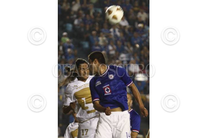 MÉXICO, D.F., 20NOVIEMBRE2010.- Juan Francisco Palencia de los Pumas de la UNAM busca rematar el balón durante el partido de vuelta en contra de la Maquina Celeste del Cruz Azul que se realizo en el Estadio Azul; partido de cuartos de final que ganó Pumas 2 goles por 0 pasando así a semifinales. FOTO: RODOLFO ANGULO/CUARTOSCURO.COM