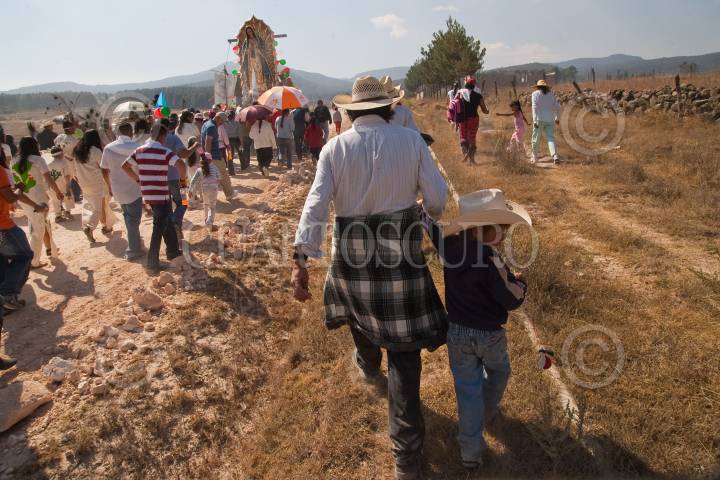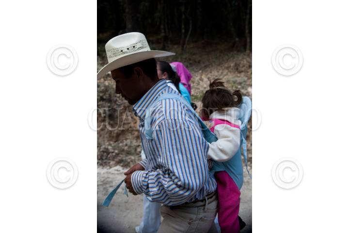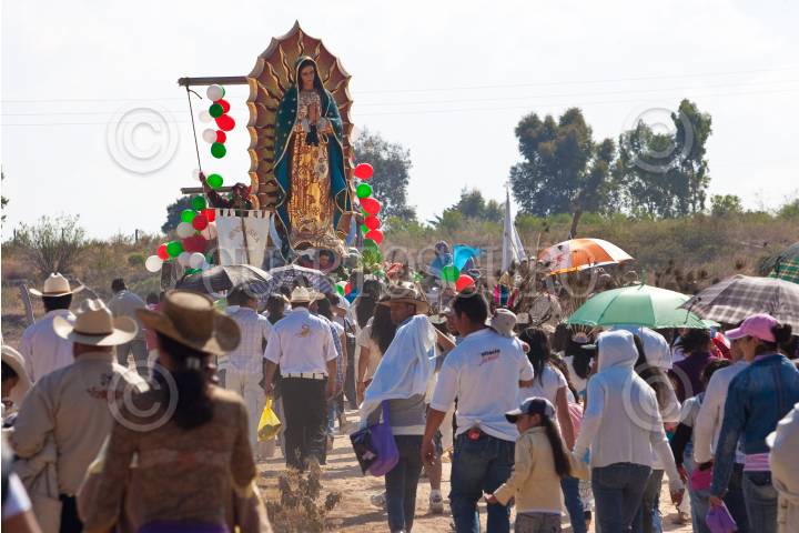 AMEALCO, QUERÉTARO, 03DICIEMBRE2010.- Por mas de tres horas de caminata unos mil quinientos habitantes de la comunidad de Laguna de Servín en el Municipio de Amealco, recibieron a la Virgen de Guadalupe más grande de Querétaro, la cual esta tallada en madera con chapa de oro que mide 3.5 metros de alto se colocó en la capilla que lleva su nombre y que se encuentra aun en obra negra con un avance del 80 por ciento. Se preveé que esté lista para el 12 de diciembre dia que le festeja la tradición católica a la también llamada "Virgen de México". En ésta comunidad actualmente hay un alto indice de pobreza y marginación. Un gran número de hombres emigra a Estados Unidos en busca de mejores percepciones salariales y con ello mejorar la economía de la familia de la localidad a través de las remesas. El Municipio de Amealco está considerado también como el que presenta mayor número de alcoholismo en la población joven a nivel estatal. FOTO: DEMIAN CHÁVEZ/CUARTOSCURO.COM
