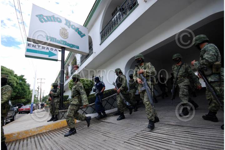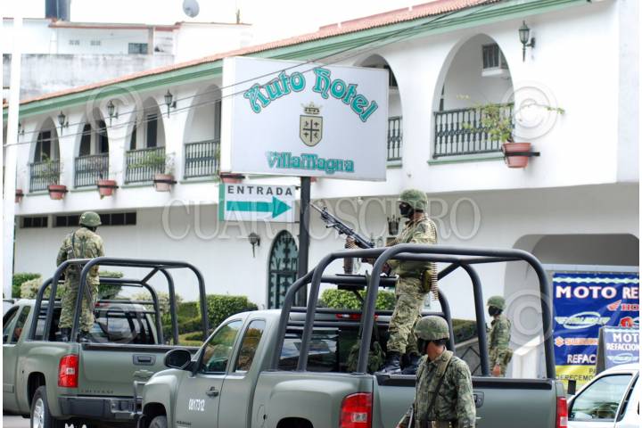 VILLAHERMOSA, TABASCO, 15ENERO2010.- Elementos castrenses realizaron un minucioso operativo en el interior del motel Villamagna, el cual se ubica sobre el boulevard Adolfo Ruiz Cortinez. En el mencionado autohotel buscaban a un peligroso delincuente de la celula de los "Zetas" sin embargo no lograron localizarlo. FOTO: MARCO POLO GUZMÁN HERNÁNDEZ/CUARTOSCURO.COM