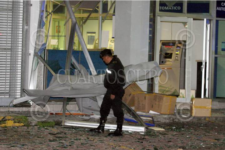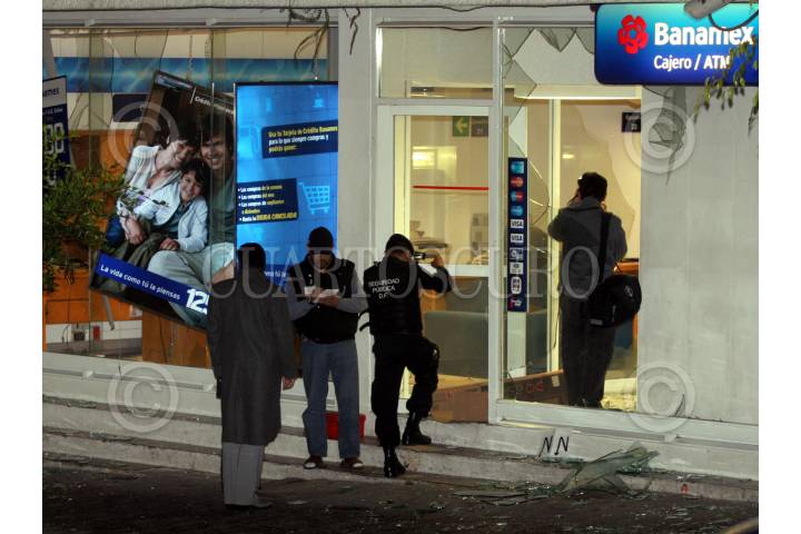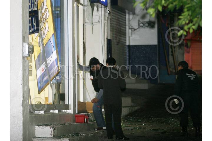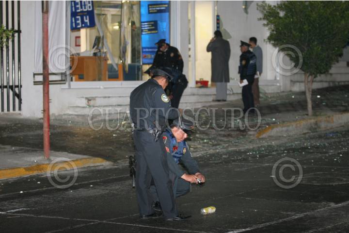 MÉXICO, D.F., 25SEPTIEMBRE2009.- Al filo de las dos de la mañana, se registro una explosión dentro de un cajero automático de Banamex, en la calle de Constitución en la colonia Villa de Milpa Alta, en la misma demarcación a escasos metros del edificio delegacional, peritos encontraron cuatro cilíndros de gas butano, de los cuales solo uno fue el que explotó. Cabe señalar que en lo que va del mes de Septiembre es el sexto atentado con latas de gas butano, de los cuales cuatro han sido a sucursales bancarias. FOTO: LUZ ACEVEDO/CUARTOSCURO.COM
