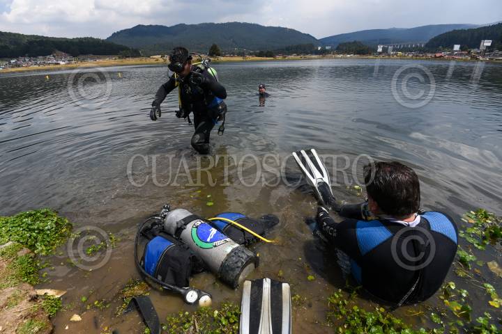 Integrantes del equipo de Búsqueda y Rescate con Buzos del SUEM llevaron a cabo una práctica en la Laguna de Salazar en La Marquesa, se encuentran capacitando a 14 buzos más que pasaron a formar parte de su equipo.