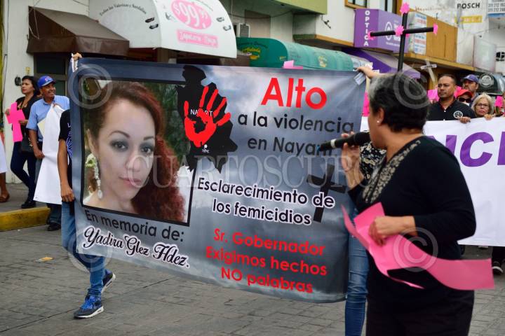 TEPEC, NAYARIT, 07JULIO2017.- El día de ayer integrantes de organizaciones sociales contra la violencia y los feminicidios marcharon en la capital del estado para exigir a las autoridades esclarescan los altos indices de violencia y asesinatos contra las mujeres. FOTO: LUIS ALBERTO OSUNA /CUARTOSCURO.COM