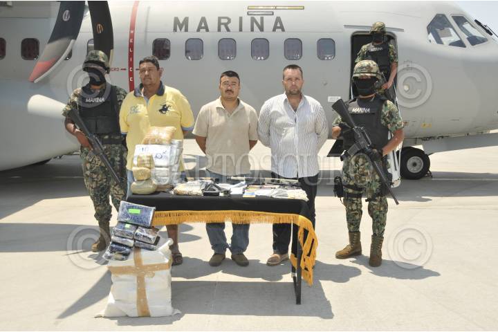 MÉXICO, D.F., 12JUNIO2012.- La Secretaría de Marina llevó a cabo el aseguramiento de tres presuntos integrantes del cártel de Jalisco nueva generación, quienes presuntamente se dedicaban al trasiego de droga en muebles tipo sala, desde la ciudad de Guadalajara, Jalisco hasta la ciudad de Tijuana, Baja California. Las personas aseguradas fueron identificadas como Freyde Becerra Gómez (a) “Chaparro”, José de Jesús Maya Zepeda (a) “El Güero” y Ricardo Salazar Vargas (a) “Quinino” y/o “Quirino”. FOTO: SEMAR /CUARTOSCURO.COM