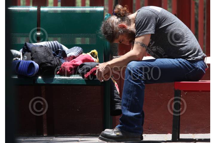 Vendedor de tacos de canasta porta cubrebocas, mientras espera clientes a las afueras del metro Barranca.