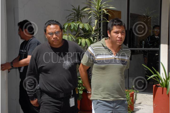 MÉXICO, D.F., 27NOVIEMBRE2009.- Elementos de la Procuraduría General de Justicia del Distrito Federal (PGJDF), capturaron a Raúl Medina Pérez, El Negro, de 29 años de edad, señalado por testigos y su presunto cómplice ya detenido, Arturo Blanco Trejo, El Tortul, como otro de los sujetos que, al parecer, participó en el asalto de la tienda Sanborns Ermita, la tarde del pasado lunes 23 del presente mes. FOTO: LUIS CARBAYO/CUARTOSCURO.COM