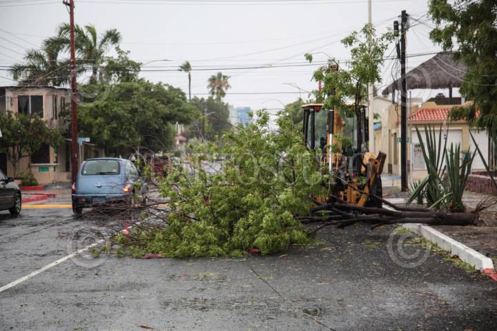 Con caída de árboles, apagones de luz eléctrica y fallo en telecomunicaciones, amanece la ciudad de La Paz tras el paso del huracán “Olaf” categoría 2 que tocó tierra en el sur de la península de Baja California Sur la noche de este jueves.