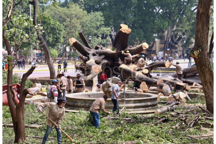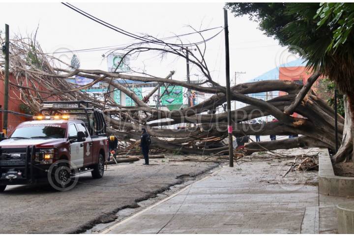 A causa de las fuertes lluvias registradas la tarde de este martes, al menos ocho árboles cayeron y se crearon inundaciones en calles de la ciudad capital. Un laurel de la india de 130 años de antigüedad que se encontraba en el zócalo capitalino cayó derivado de la lluvia y el viento, Protección Civil no reportó lesionados.