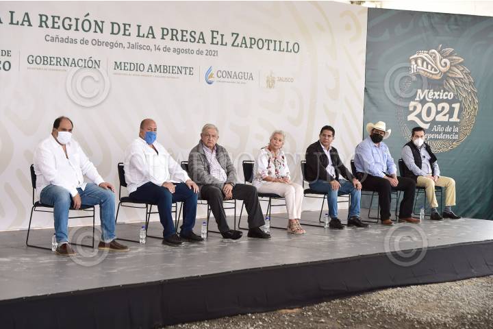 Andrés Manuel López Obrador, presidente de México encabezó la visita a la región de la Presa 'El Zapotillo'. Fue acompañado por: Lázaro Cárdenas Batel, Coordinador de Asesores de la Presidencia de la República; Germán Arturo Martínez Santoyo, Director General de la Comisión Nacional del Agua; Enrique Alfaro Ramírez, Gobernador Constitucional del Estado de Jalisco; Olga Sánchez Cordero, Secretaria de Gobernación; Rabindranath Salazar Solorio, Subsecretario de Desarrollo Democrático, Participación Social y Asuntos Religiosos de la Secretaría de Gobernación; Reynaldo González Gómez, Presidente Municipal de Cañadas de Obregón, Jalisco y Alejandro Macías Velasco, Presidente Municipal de Yahualica de González Gallo, Jalisco.