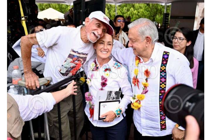 CAÑADAS DE OBREGÓN, JALISCO, 17AGOSTO024.- Claudia Sheinbaum, presidenta electa de México, y Andrés Manuel López Obrador, presidente de México, durante su llegada all evento protocolario del Plan de Justicia para los Pueblos de Temacapulín, Acasico y Palmarejo, en la plaza cívica de Temacapulín. FOTO: PRESIDENCIA/CUARTOSCURO.COM