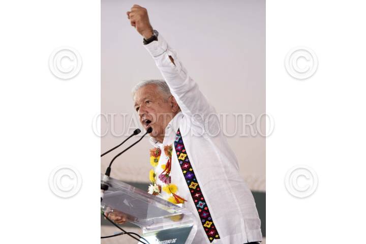 Andrés Manuel López Obrador, presidente de México durante su participación en la visita a la región de la Presa "El Zapotillo".