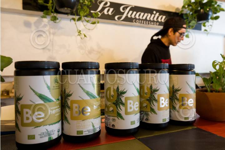 "Pestohemp"; semillas de cañamo con sal; semillas sin cáscara; cerveza infusionada y proteína son algunos de los productos base cañamo que se sirven en La Juanita Coffeeshop.
