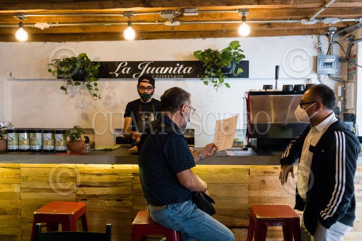 Dos comensales esperan su café en La Juanita Coffeeshop.