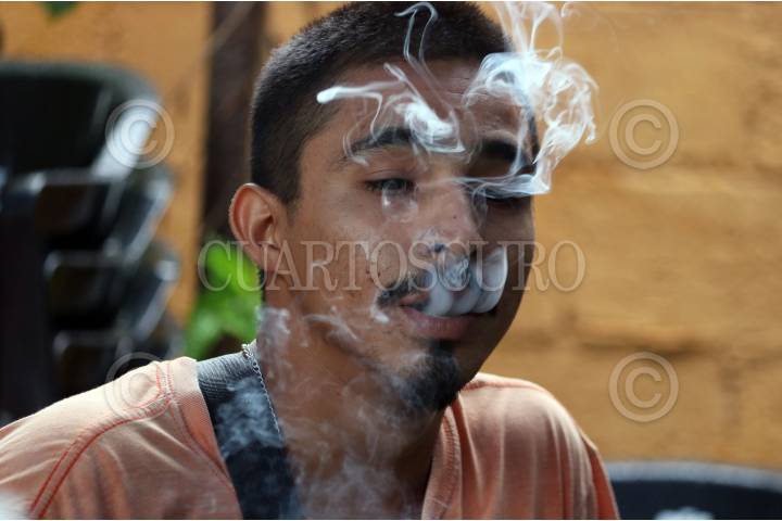 Un joven fuma un cigarrillo de marihuana durante el taller de cultivo de cáñamo y cannabis que se realizo en este municipio.