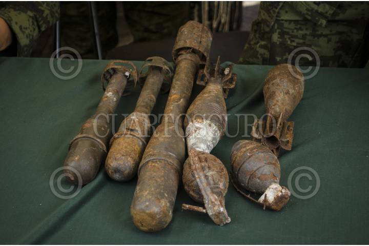 MÉXICO, D.F., 03ENERO2013.- Granadas de mano y de cañón son entregadas por los ciudadanos durante el programa de entrega de armas voluntarias de habitantes de la delegación Iztapalapa. El programa busca incentivar con una pequeña remuneración económica a las personas que entreguen cual quier tipo de armas de fuego. Cabe resaltar que en lo que el programa se han entregado más de mil armas de fuego según datos de la dependencia gubernamental. FOTO: EMILIANO RUVAL / CUARTOSCURO.COM