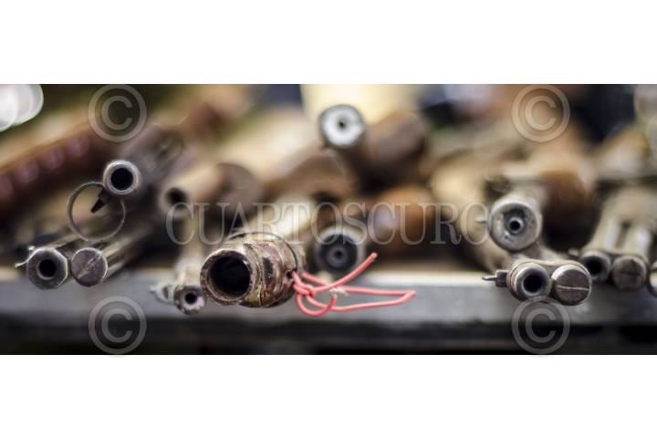 MÉXICO, D.F., 03ENERO2013.- Cañones de rifles de asalto durante el programa de entrega de armas voluntarias de habitantes de la delegación Iztapalapa. El programa busca incentivar con una pequeña remuneración económica a las personas que entreguen cual quier tipo de armas de fuego. Cabe resaltar que en lo que el programa se han entregado más de mil armas de fuego según datos de la dependencia gubernamental. FOTO: EMILIANO RUVAL / CUARTOSCURO.COM