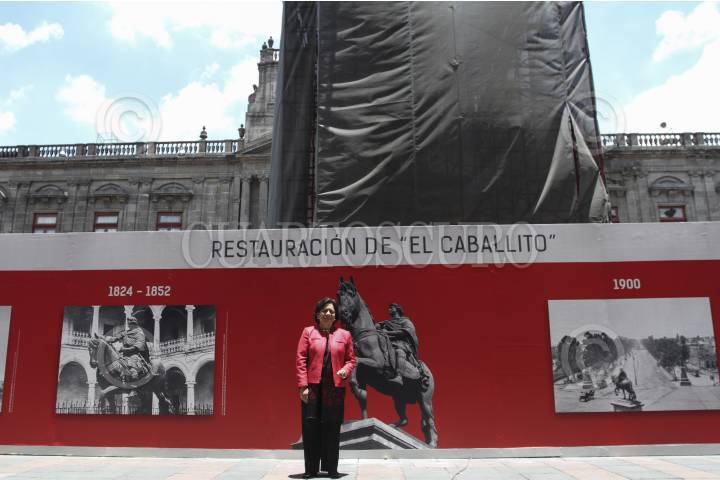CIUDAD DE MÉXICO, 28JUNIO2016.- María Teresa Franco, director del Instituto Nacional de Antropología e Historia (INAH), anunció la restauración de la estatua de "El Caballito" de Manuel Tolsá, localizada en la explanada del Museo Nacional de Arte (Munal), y frente al Palacio de Minería. La etapa de restauración durará aproximadamente tres meses. FOTO: MARÍA JOSÉ MARTÍNEZ /CUARTOSCURO.COM