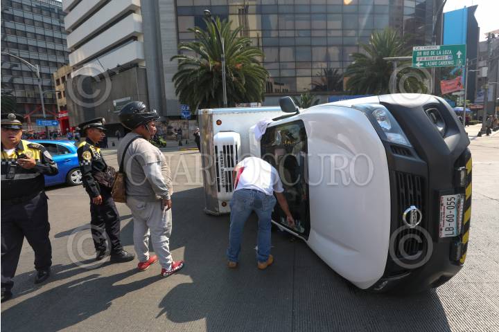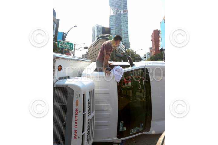 CIUDAD DE MÉXICO, 11NOVIEMBRE2019.- Una camioneta que transportaba pescado se volcó sobe Reforma, enfrente del Caballito y Juárez. FOTO: ARMANDO MONROY /CUARTOSCURO.COM