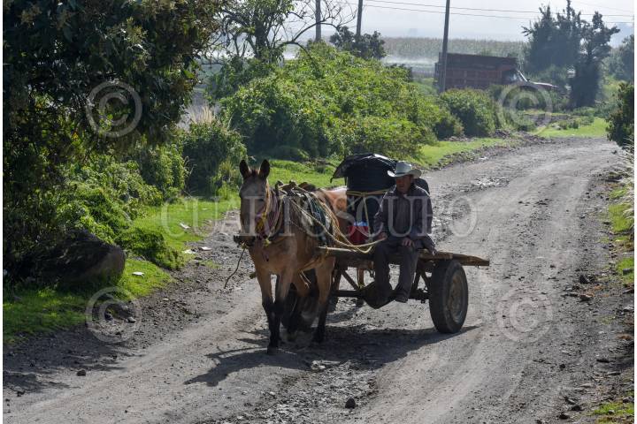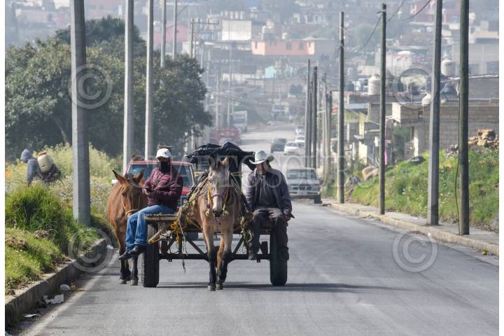 En comunidades de Tenango del Valle se siguen utilizando carreras tiradas por caballo como un medio de transporte para poder trasladarse a terrenos de cultivo de la zona.