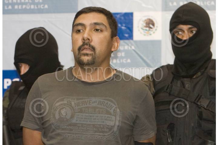 MÉXICO, D.F., 07SEPTIEMBRE2008.- Fué presentado en las instalaciones de la SIEDO el presunto narcotraficante Alberto Sánchez Hinojosa, alias "El Tony" y/o "Comandante Castillo", líder de la organización del cártel del Golfo que opera en el estado de Tabasco,la PGR declaro que Alberto Sánchez Hinojosa es uno de los lugartenientes de Heriberto Lazcano Lazcano, actual cabecilla del cártel del Golfo o de los "Cárdenas Guillén". FOTO: SÁSHENKA GUTIÉRREZ/CUARTOSCURO.COM
