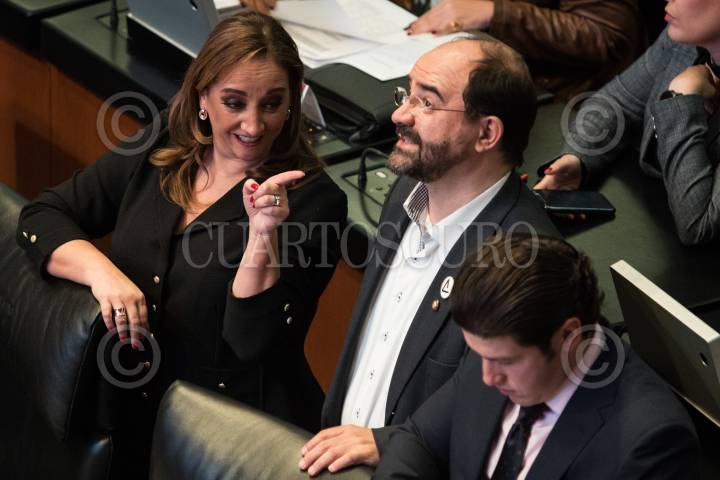 CIUDAD DE MÉXICO, 06DICIEMBRE2018.- Claudia Ruíz Massieu y Emilio Álvarez Icaza, senadora del PRI e independiente, conversan durante la sesión plenaria del Senado de la República. FOTO: MISAEL VALTIERRA /CUARTOSCURO.COM