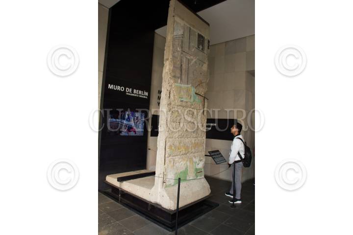 CIUDAD DE MÉXICO, 21MARZO2019.- Hombre mira con detenimiento6l fragmento numero 266 del Muro de Berlín, expuesto en el Museo de Memoria y Tolerancia. FOTO: ROGELIO MORALES /CUARTOSCURO.COM