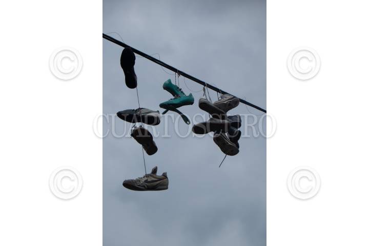 MÉXICO, D.F.,27JULIO2015.- Por alguna razón que nadie explica cuales podrÍan ser, es costumbre en distintas partes del país que las personas suban los zapatos viejos en algunas zonas, solo suben los tenis como en la foto que se hizo en la Unidad Santa Fé, en la delegación Alvaro Obregon. FOTO: PEDRO VALTIERRA /CUARTOSCURO.COM
