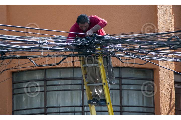 CIUDAD DE MÉXICO, 11ENERO2018.- Un trabajador realiza conexiones de cable de fibra óptica en la zona centro de la capital. FOTO: TERCERO DÍAZ /CUARTOSCURO.COM