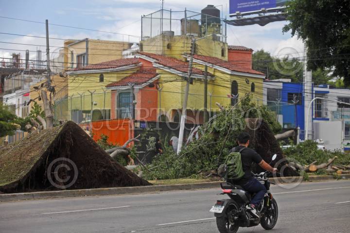ZAPOPAN, JALISCO. 03JULIO2024.- Tras las fuertes lluvias del día de ayer en diversas zonas del Área Metropolitana de Guadalajara, se registraron arboles caídos, mismos que ocasionaron daños en vehículos, cableado, establecimientos y casas de la ciudad, por fortuna no se reportan perdidas fatales. FOTO: FERNANDO CARRANZA GARCIA / CUARTOSCURO.COM