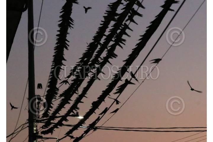 CUERNAVACA, MORELOS, 19ENERO2025.- Una bandada de cientos de golondrinas se posan en los cables de electricidad, en la calle Estado de Puebla, al sur de la capital de Morelos. FOTO: MARGARITO PÉREZ RETANA/CUARTOSCURO.COM