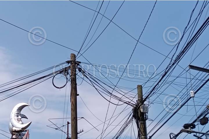 CIUDAD DE MÉXICO, 11JULIO2024.- En la Capital, una excesiva maraña de cables de fibra óptica, de telefonía y otros en la vía pública pone en riesgo la integridad de los transeúntes, motociclistas, ciclistas y vehículos. Alcaldes de la capital han buscado impulsar la regulación de empresas que instalan cableado aéreo y subterráneo. De acuerdo con el artículo 53 de la Constitución de la Ciudad de México, son las alcaldías las que tiene la competencia en las instalaciones aéreas y subterráneas en la vía pública, pero los proyectos no han prosperado y solo se acumulan kilómetros de materiales que penden de los postes. FOTO: VICTORIA VALTIERRA/CUARTOSCURO.COM