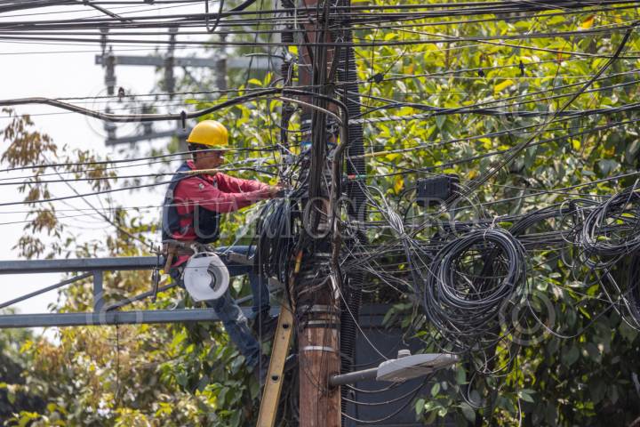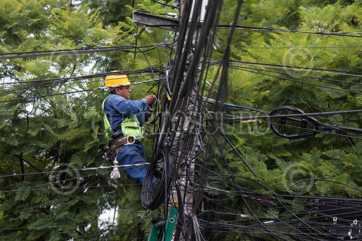 CIUDAD DE MÉXICO, 25MARZO2025.- Trabajadores de las llamadas cableras que ofrecen servicios de internet o tv por cable arregla conexiones en un poste de la colonia Roma. FOTO: MOISÉS PABLO/CUARTOSCURO.COM