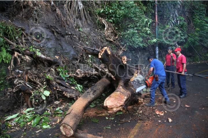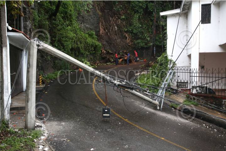 Las lluvias de esta madrugada dejaron algunos daños en varios municipios del estado como fueron inundaciones en pasos a desnivel o salida de caudal de ríos y barrancas. En la imagen un árbol se vino abajo en la calle Laurel de la colonia Plutarco Elías Calles, al reblandecerse la tierra que lo sostenía, llevándose el tendido eléctrico y un poste.