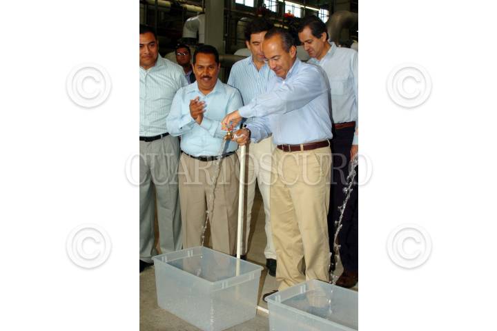 SAN JOSÉ DEL CABO, BAJACALIFORNIASUR, 19ABRIL2007.- Felipe Calderón Hinojosa, Presidente de la República acompañado por Luis Armando Díaz, presidente municipal y Juan Rafael Elvira, Secretario del Medio Ambiente inauguraron la planta desaladora de agua de los Cabos. FOTO: IMPERIO RESENDIZ/CUARTOSCURO.COM