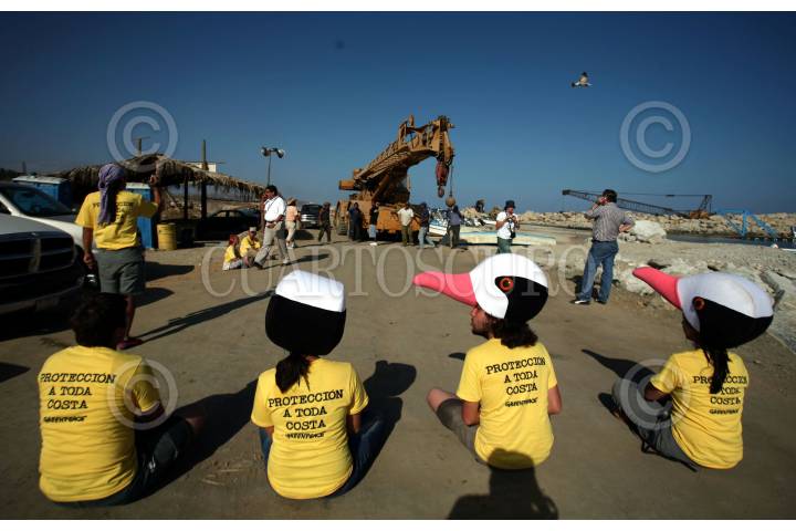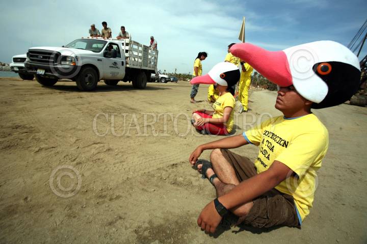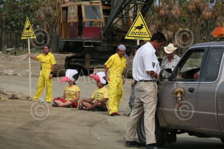 SAN JOSÉ DE LOS CABOS, BAJA CALIFORNIA SUR 08MAYO2007.-Integrantes de GreenPeace por segundo día de campamento en Puerto Los Cabos, exigieron que sea reubicada la marina que se construye en la única reserva ecológica del estado, en tanto que la Procuraduría Federal de Protección al Medio Ambiente (Profepa) se comprometió a enviar a la brevedad inspectores a la zona. FOTO: GUSTAVO GRAF/GREENPEACE/CUARTOSCURO.COM