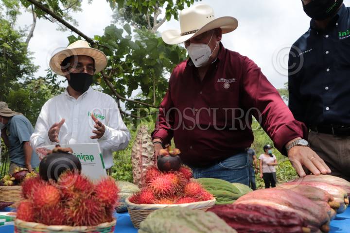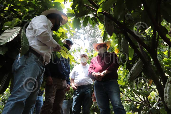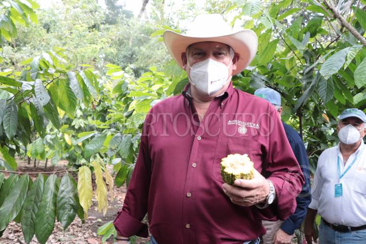 Víctor Manuel Villalobos visitó un campo experimental de cacao en Tapachula, Chiapas.