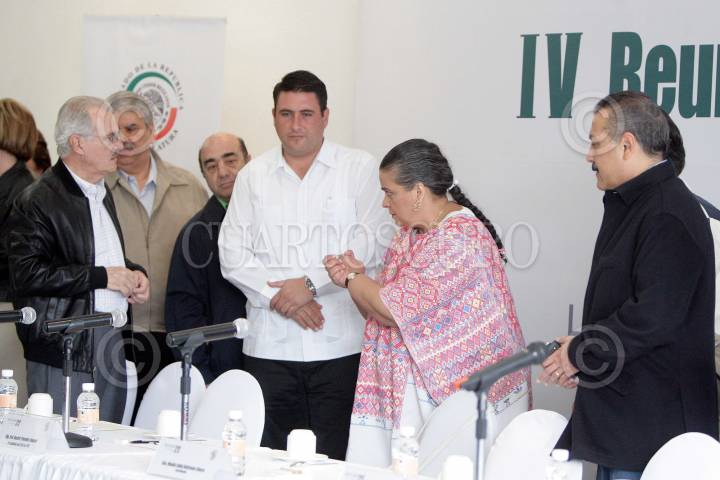 LA PAZ, BAJA CALIFORNIA SUR, 26ENERO2011.- Francisco Labastida, senador del PRI, en compañia de Manlio Fabio Beltrones, coordinador y presidente de la mesa directiva del Senado, Beatriz Paredes Rangel, presidenta del CEN del PRI y Cleominio Zoreda, senador del PRI, durante el inicio de la reunión plenaria del PRI en el estado. FOTO: CUARTOSCURO.COM