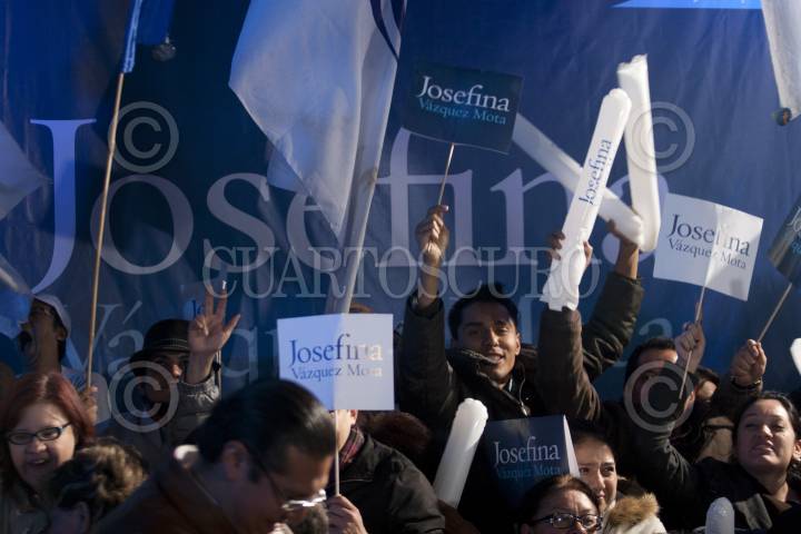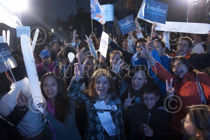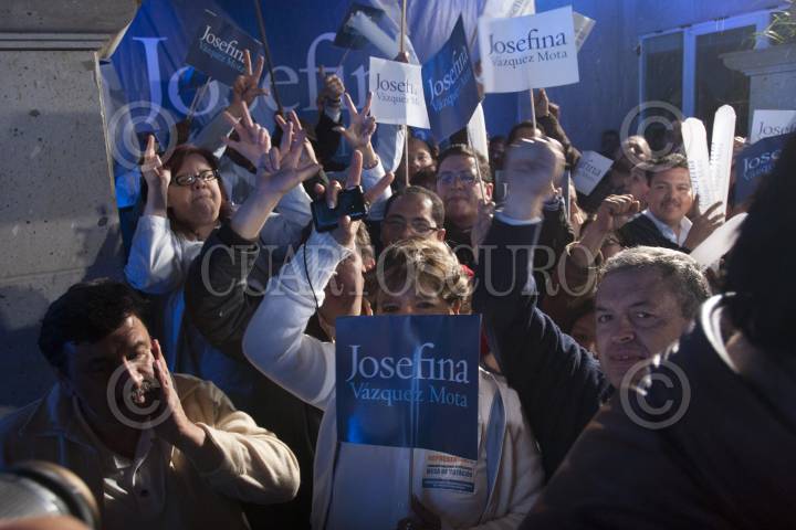 MÉXICO, D.F., 05FEBRERO2012.- Simpatizantes de Josefina Vázquez Mota, aspirante a la candidatura de PAN para las elecciones presidenciales, festejan tras el anuncio de la ventaja ante sus contendientes de la virtual candidata electa. FOTO: GUILLERMO PEREA/CUARTOSCURO.COM