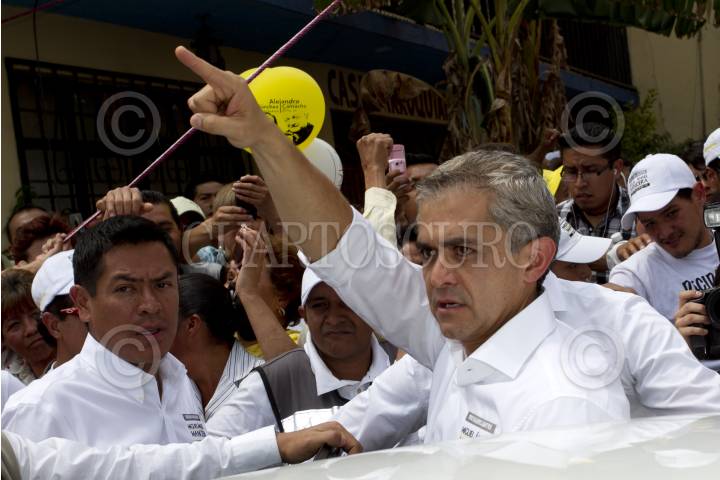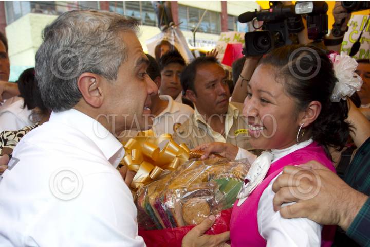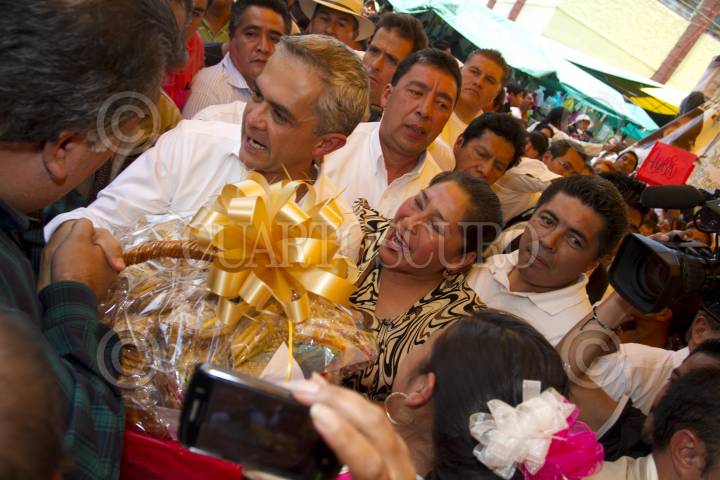MÉXICO, D.F. 15MAYO2012.- Miguel Ángel Macera, candidato de las izquierdas a la Jefatura de Gobierno del Distrito Federal, acompañado de Alejandra Barrales candidata al Senado de la República, acudió a la Plaza Quirino Mendoza de Tulyehualco de la delegación Xochimilco, donde dio inicio la campaña de Miguel Ángel Cámara, como candidato a la jefatura de esta demarcación. FOTO: GUILLERMO PEREA /CUARTOSCURO.COM