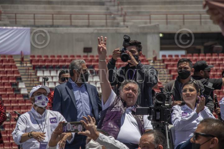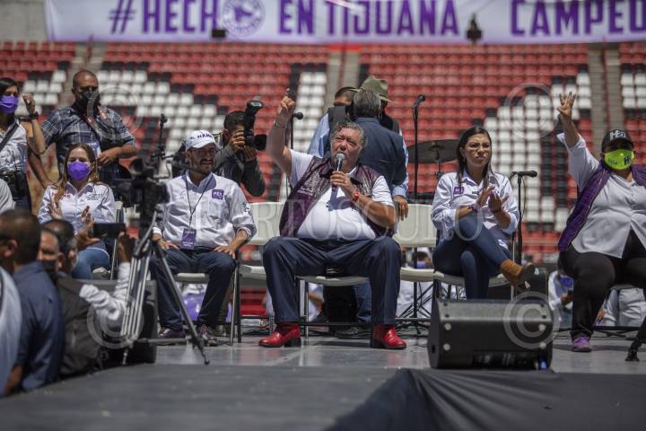 El candidato a la gubernatura de Baja California, Jorge Hank, realizó su cierre de campaña en el estadio Caliente.